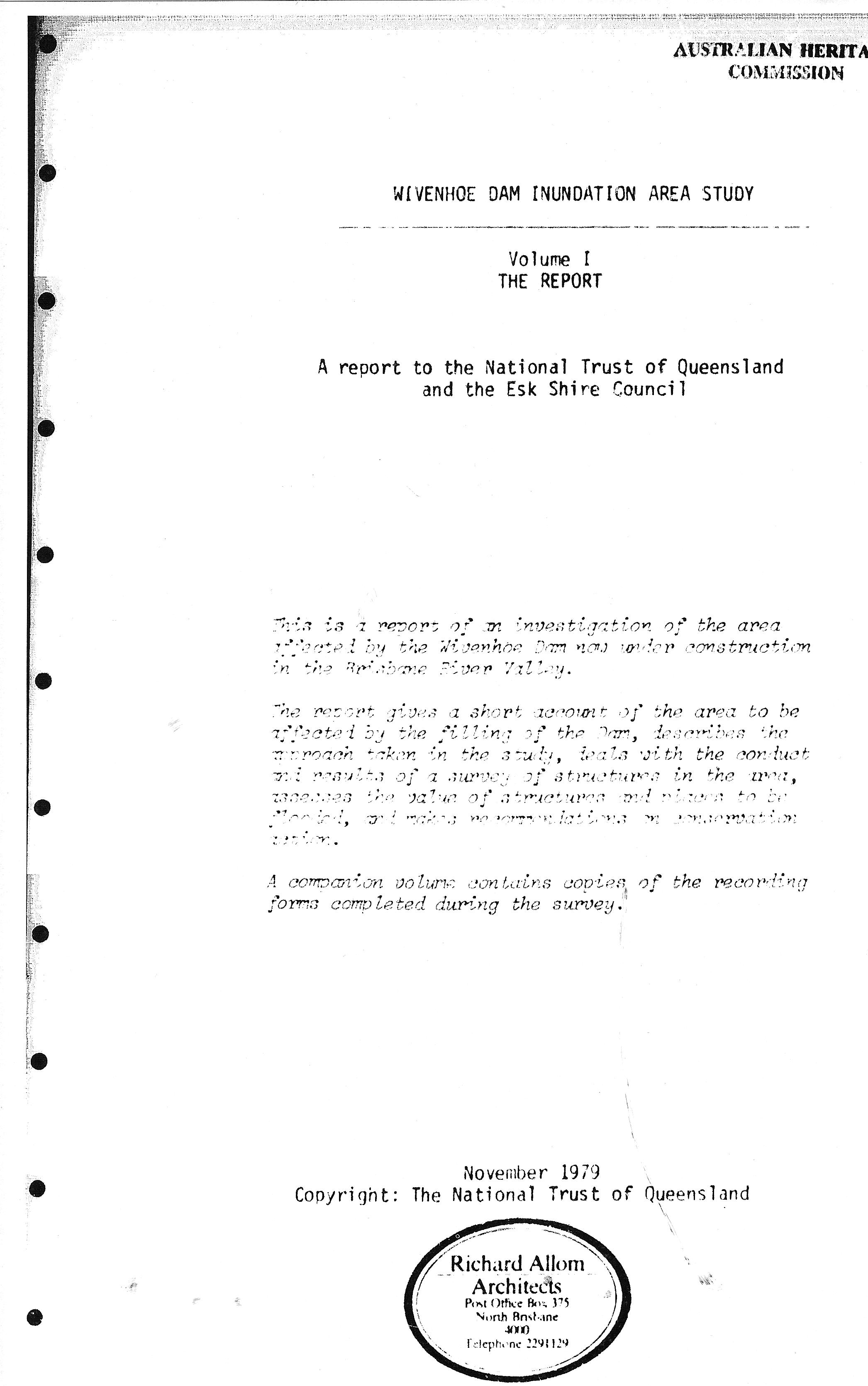 A report to the National Trust of Queensland and the Esk Shire Council.