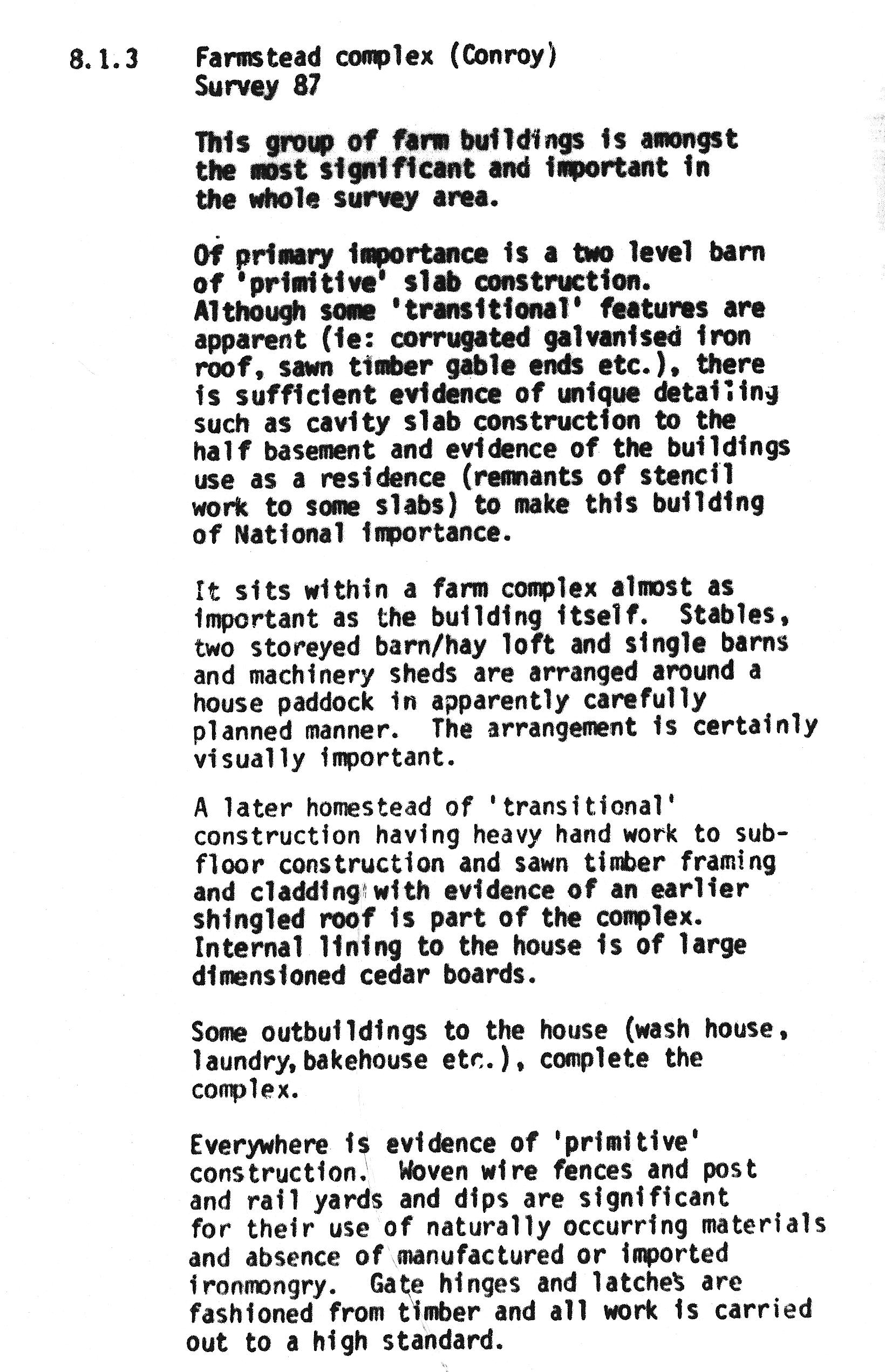 relationship with Conroy's farm (Survey 87) and therefore has