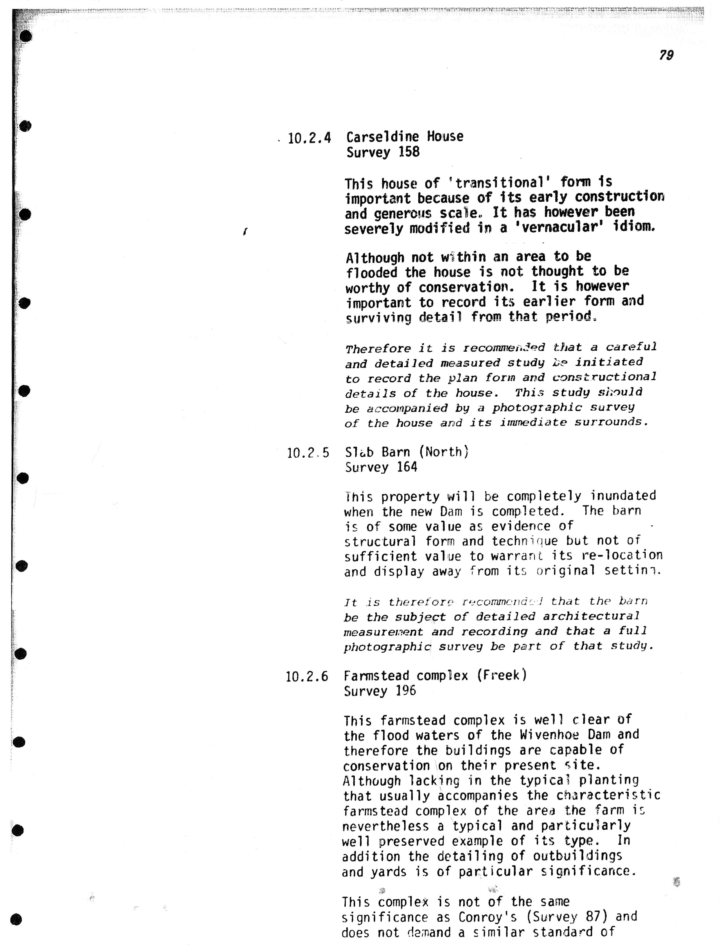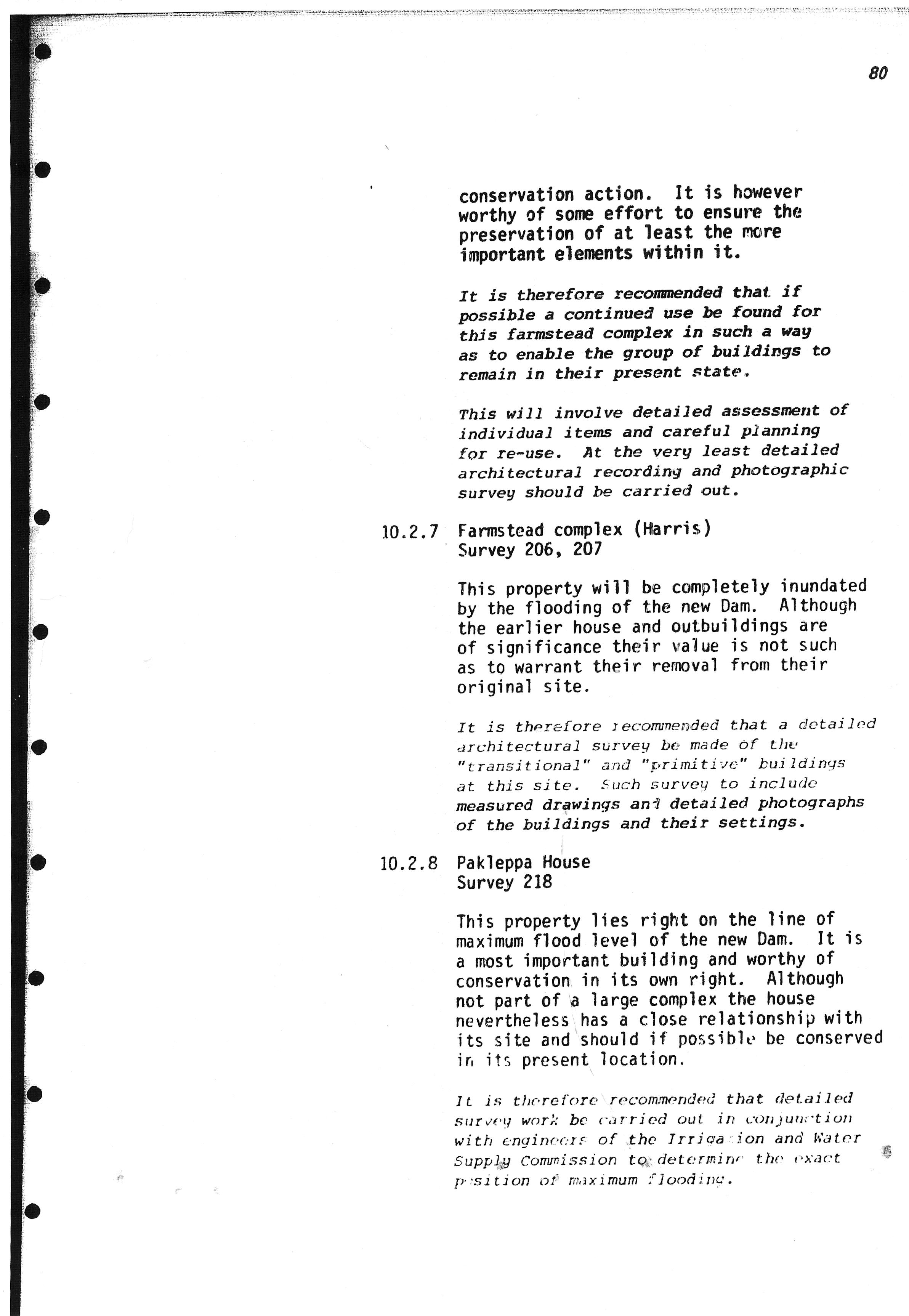 be flooded, and makes recommendations on preservation action.