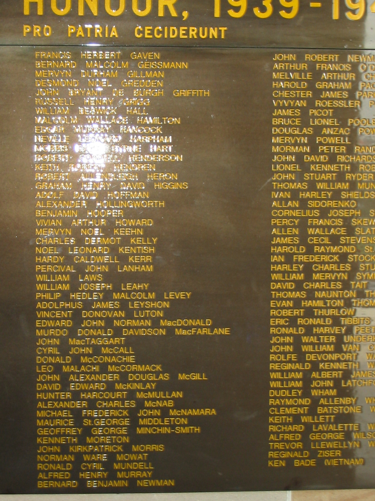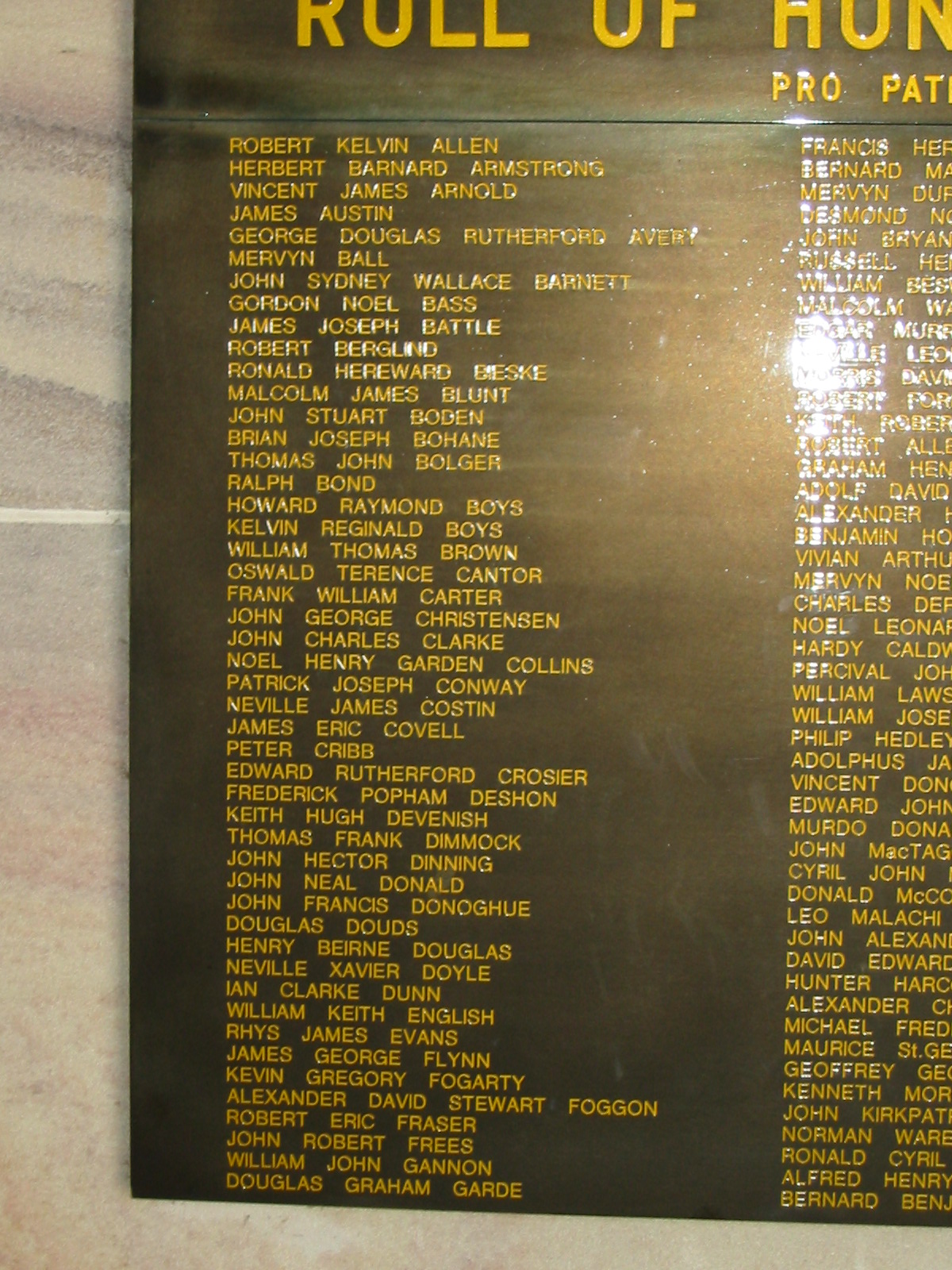 Roll of Honour, 1939-1945