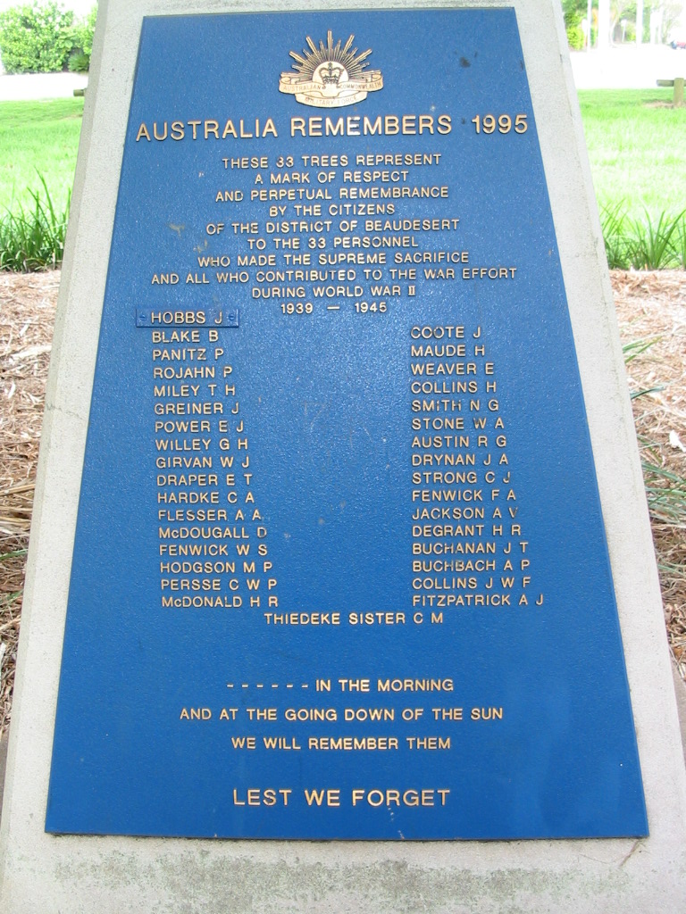 Beaudesert WWII war memorial (Palm Garden)