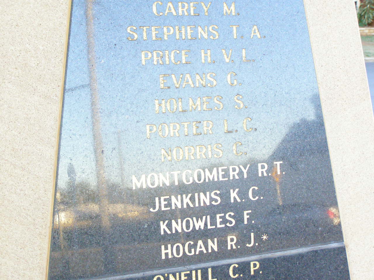 Connole P J Sharp J Harrington G Adams J Carey M Stephens T A Price H V L Evans G Holmes S Porter L C Norris C Montgomery R T Jenkins K C Knowles F Hogan R J * O'Neill C P Kettle L J D Thomas J L Nobes W J * service members