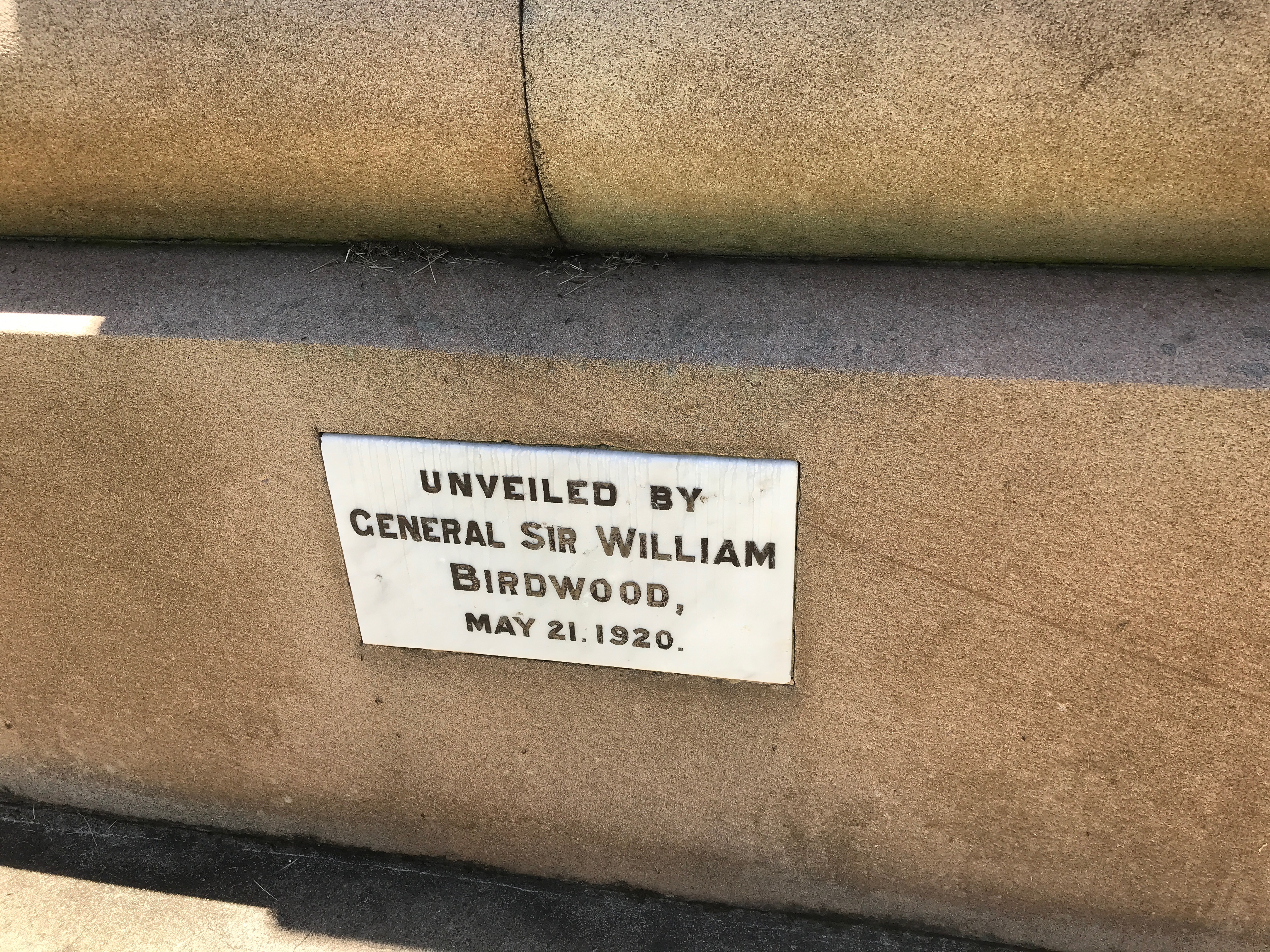 Unveiled by General Sir William Birdwood 21 May 1920
