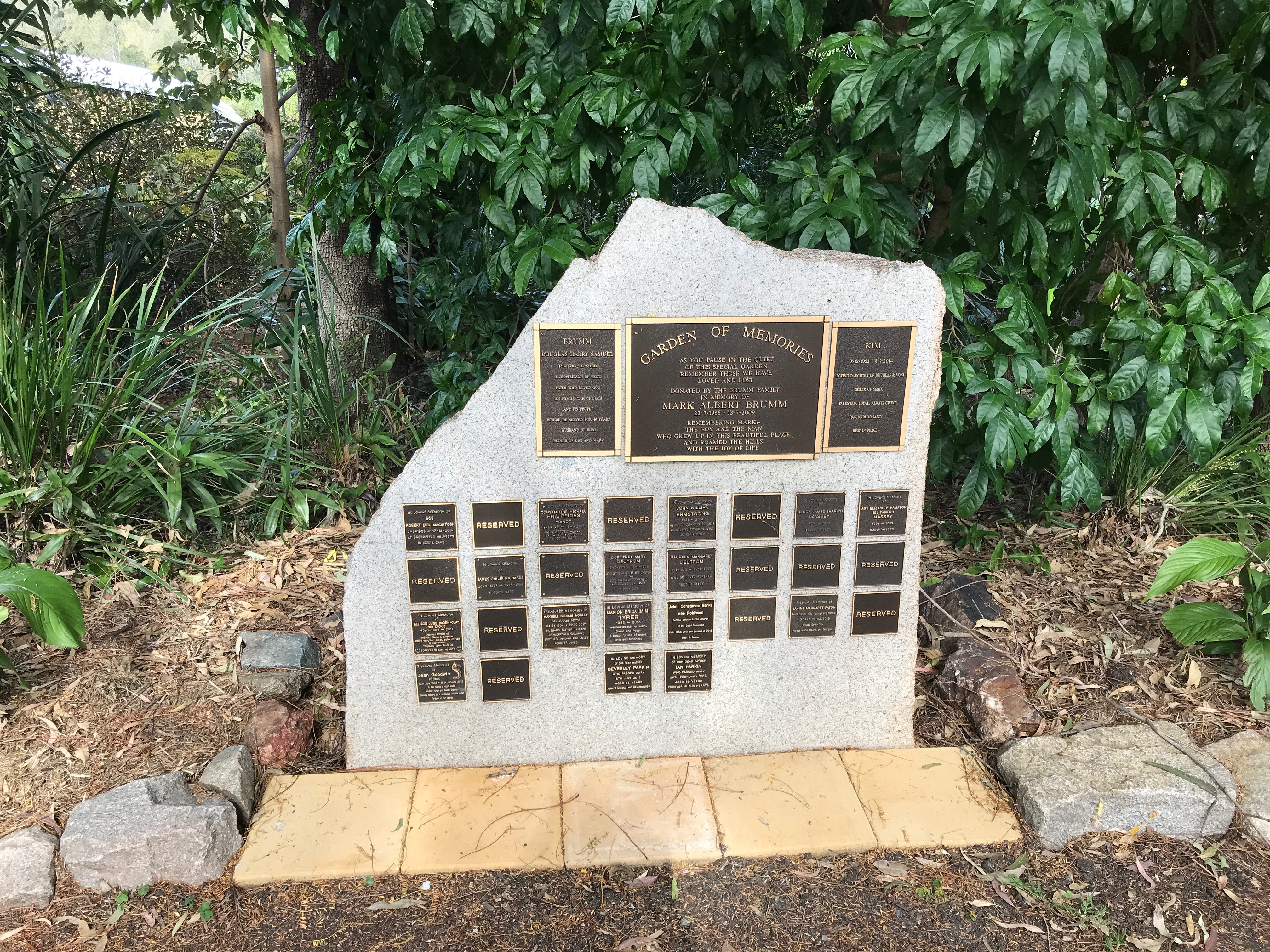This collection is of the memorial wall in the gardens of the Kenmore-Brookfield Anglican church. The memorial wall was built around 2009, whilst the historic church dates from 1893.