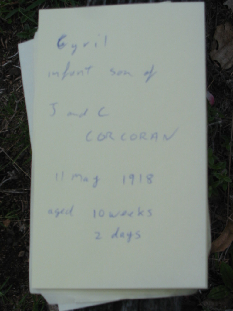 Cyril, infant son of J and C CORCORAN,