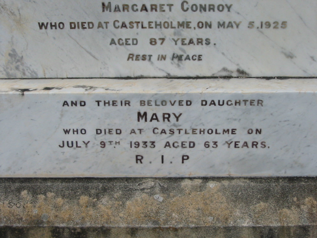 died Castlehome 3 Oct 1907 in her 67th years;