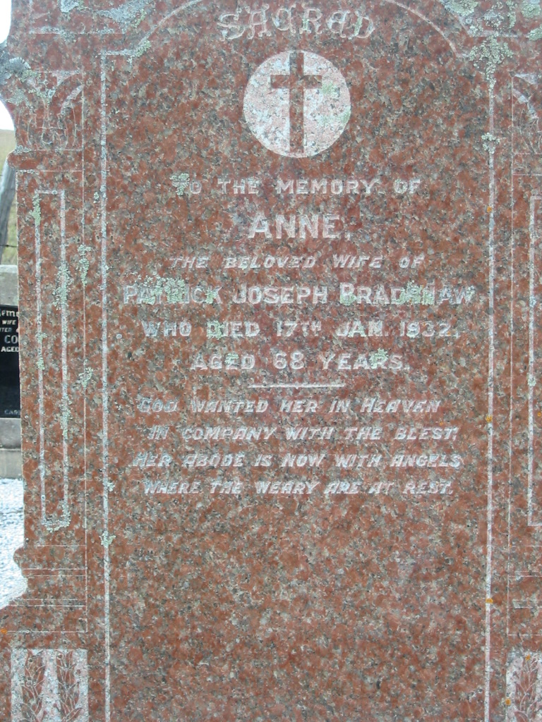 Anne, wife of Patrick Joseph BRADSHAW,