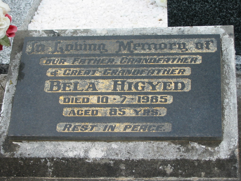 father grandfather great-grandfather Bela HIGYED died 10-7-1985 aged 85 years;