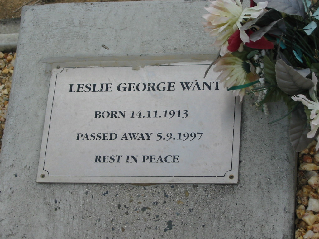 Leslie George WANT born 14 Nov 1913 died 5 Sept 1997;
