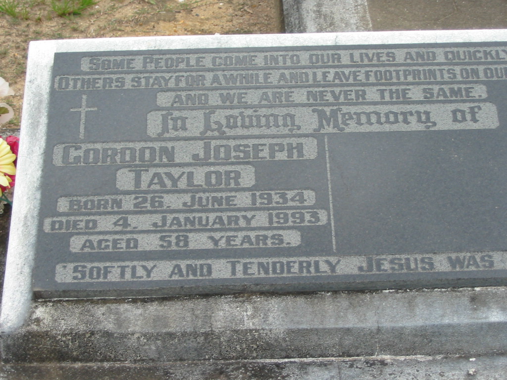 Gordon Joseph TAYLOR born 26 June 1934 died 4 Jan 1993 aged 58 years;
