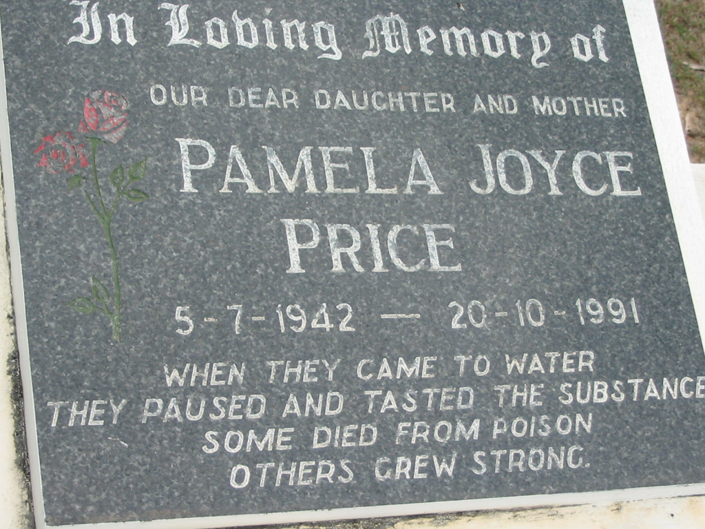 daughter mother Pamela Joyce PRICE 5-7-1942 - 20-10-1991;