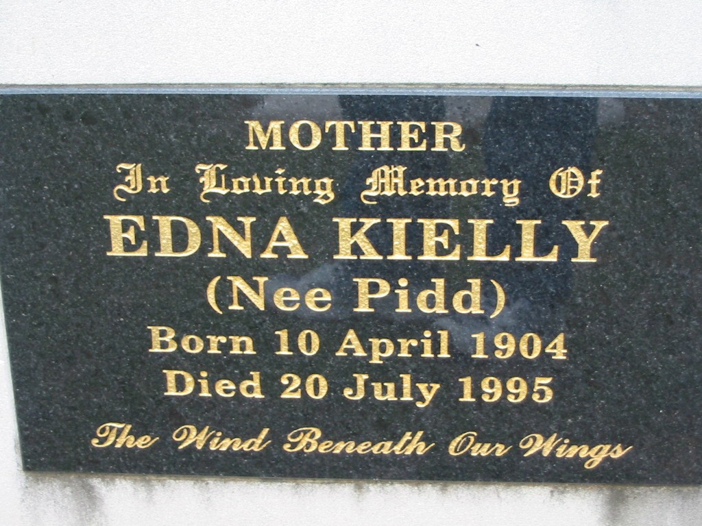 mother Edna KIELLY nee PIDD born 10 April 1904 died 20 July 1995;