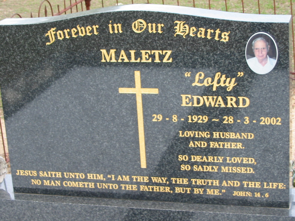 Private E. MALETZ, died 28.3.2002 age 72;
