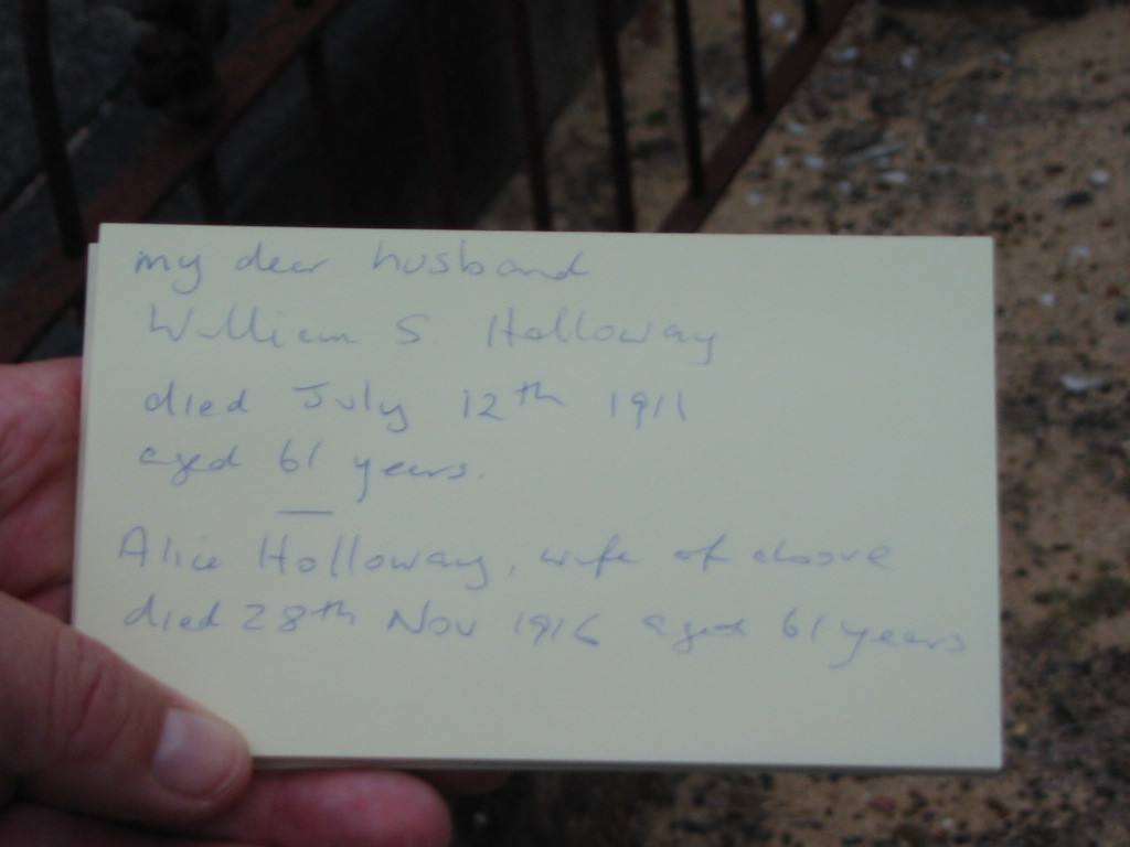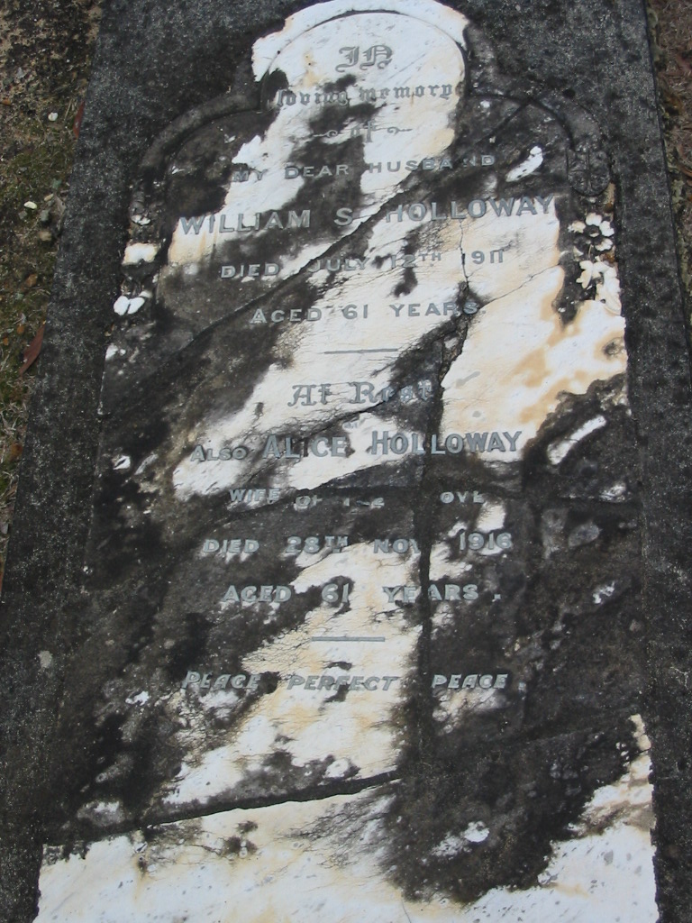 wife Alice HOLLOWAY died 28 Nov 1916 aged 61 years;