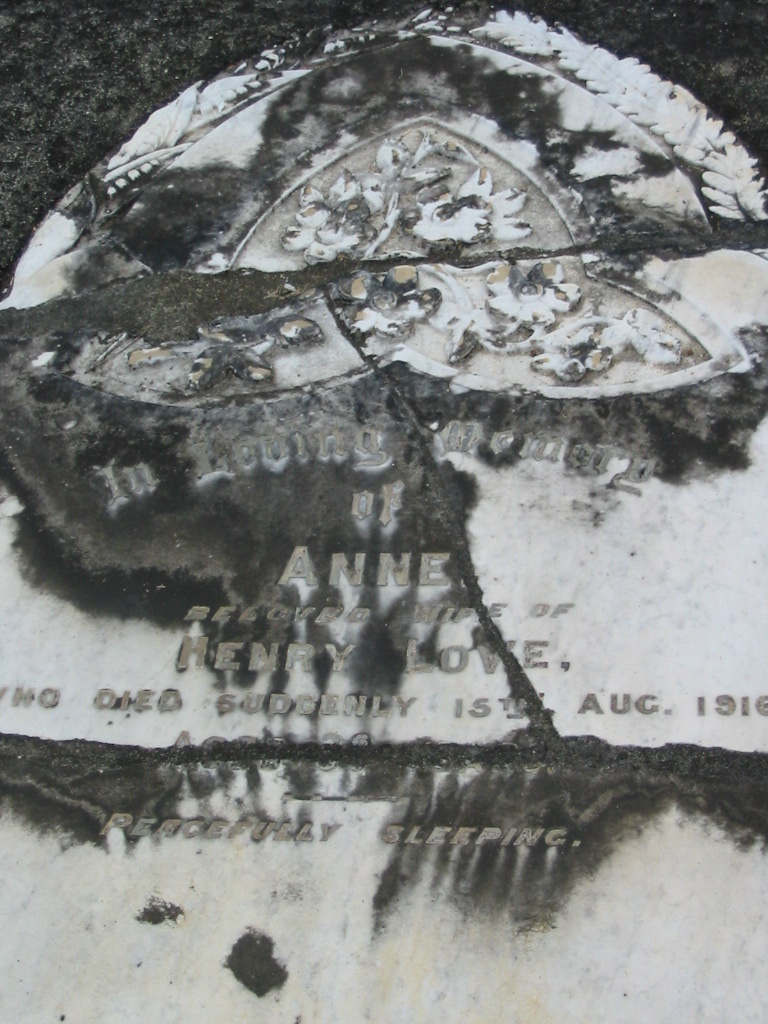 Anne wife of Henry LOVE died 15 Aug 1916 aged 39? years;
