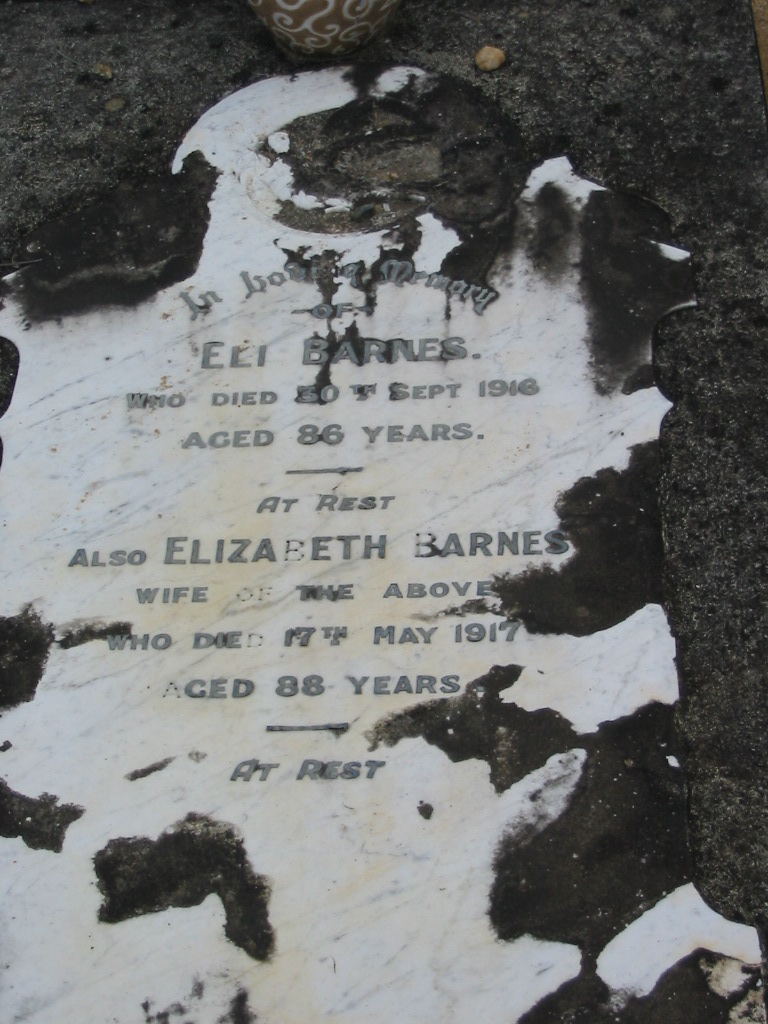 Eli BARNES died 30 Sept 1916 aged 86 years;