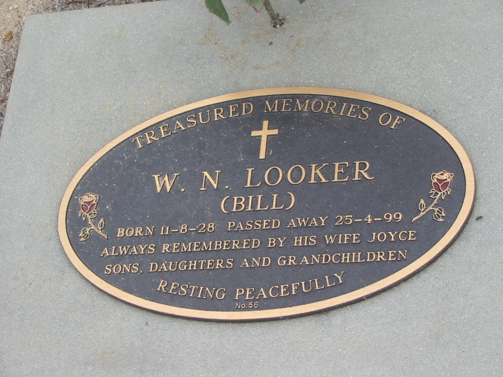 W.N. (Bill) LOOKER born 11-8-28 died 25-4-99 wife Joyce;