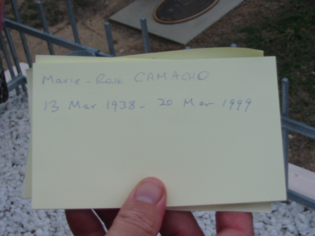 Marie-Rose CAMACHO, Meme, 13 March 1938 - 20 March 1999 ;