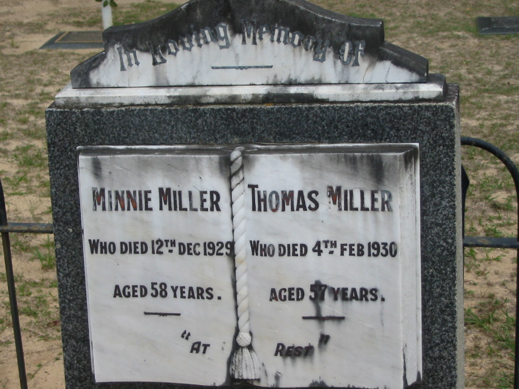 Minnie MILLER died 12 Dec 1929 aged 58 years;