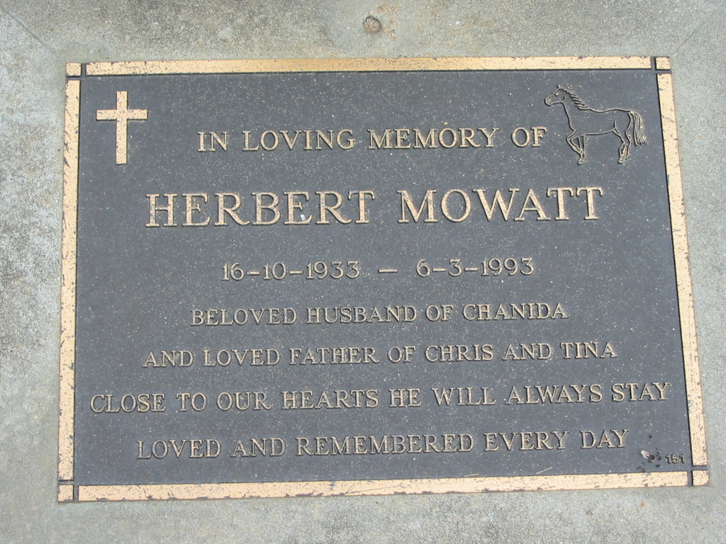 Herbert MOWATT 16-10-1933 - 6-3-1993, husband of Chanida, father of Chris and Tina;