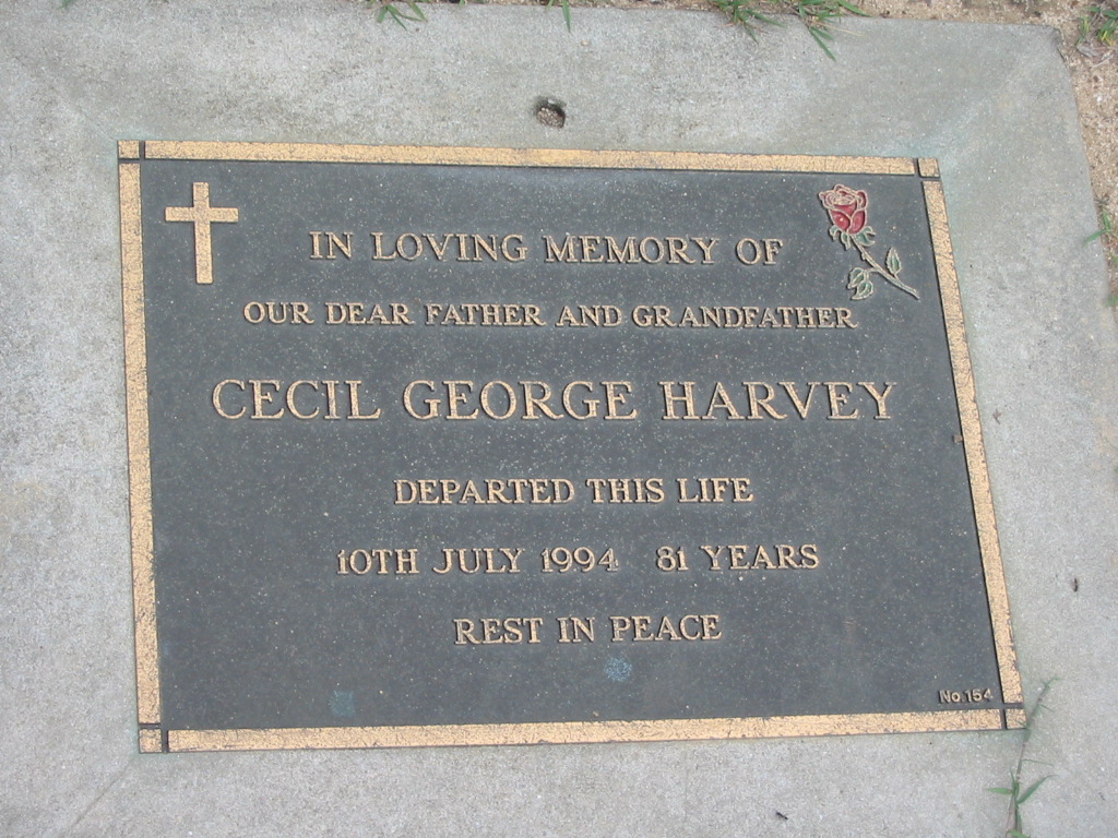 father grandfather Cecil George HARVEY died 10 July 1994 aged 81 years;