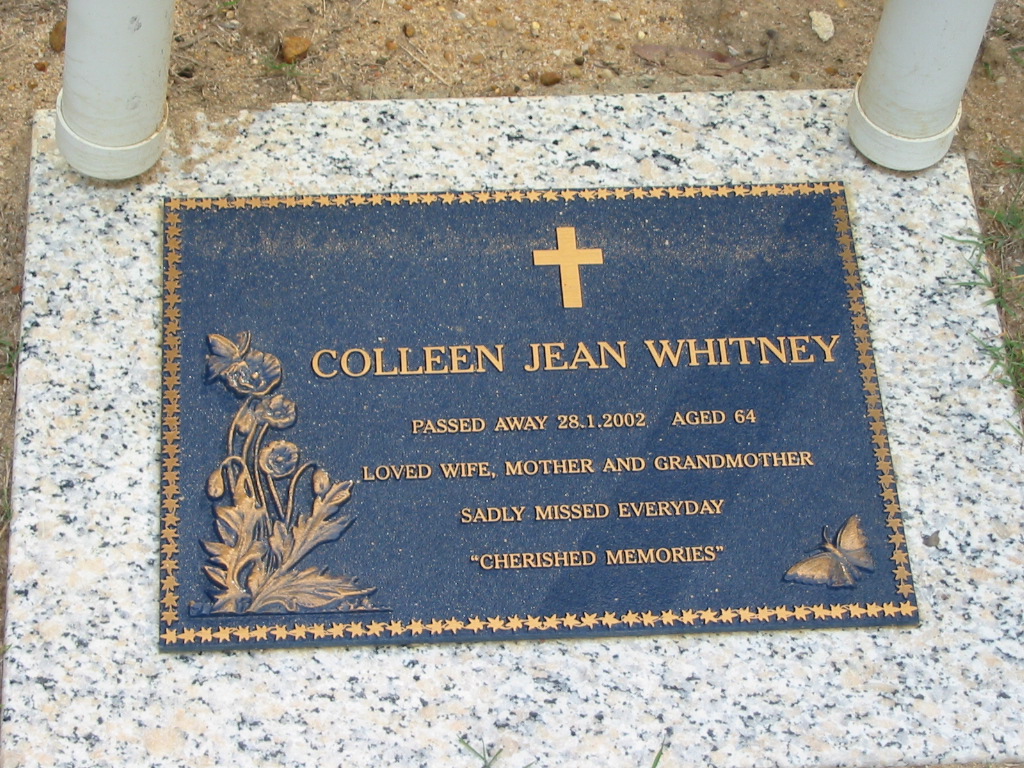 Colleen Jean WHITNEY died 28 Jan 2002 aged 64, wife mother grandmother;