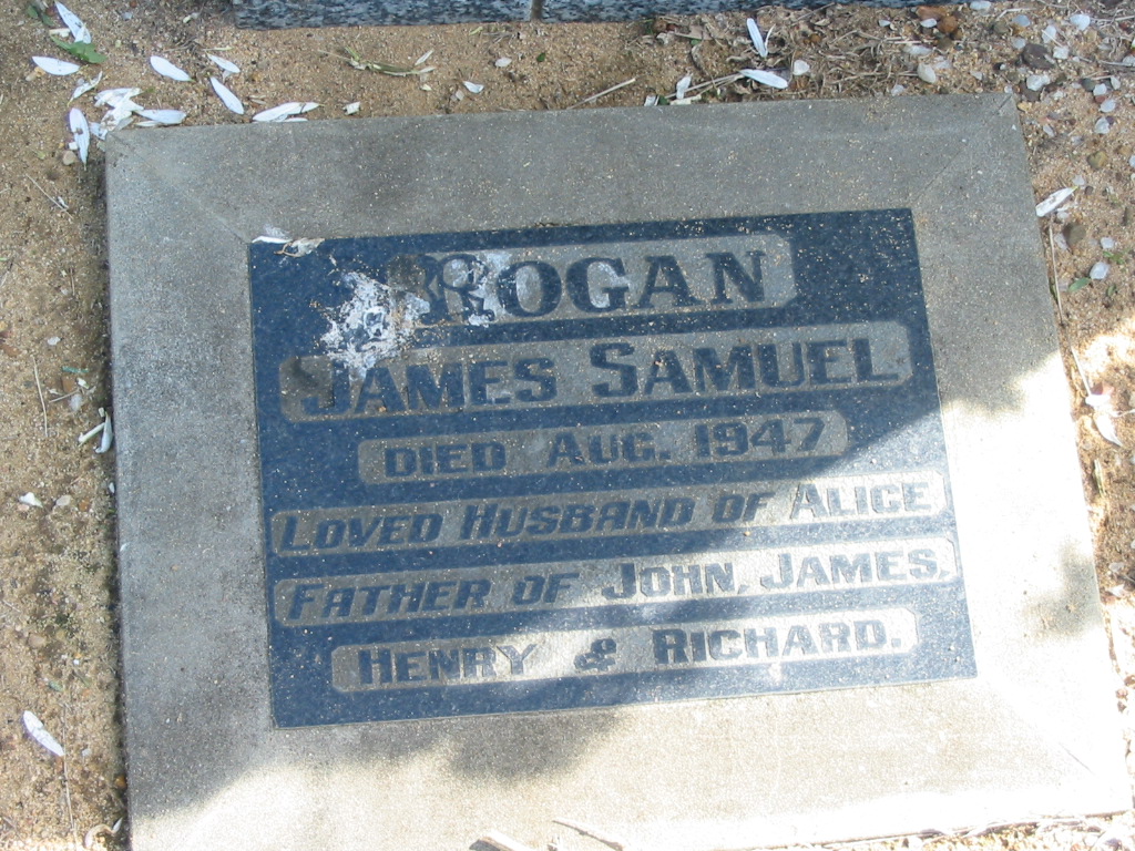 James Samuel HOGAN died Aug 1947, husband of Alice, father of John, James, Henry & Richard;
