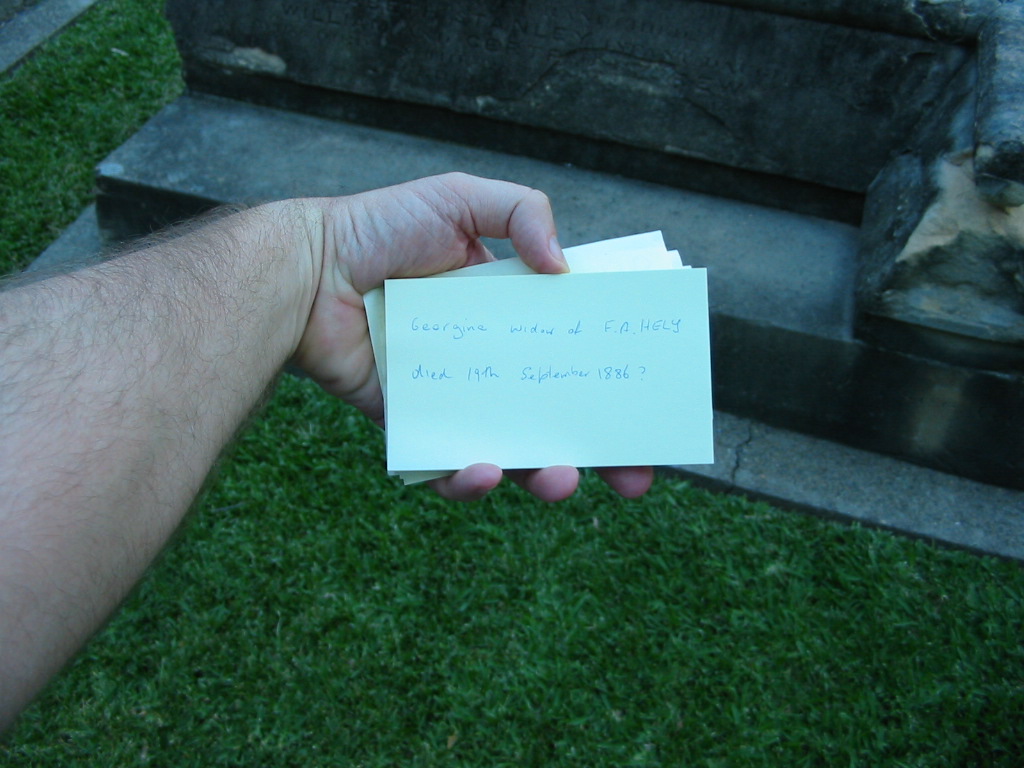 Georgina widow of F.A. HELY died 19 Sept 1886,