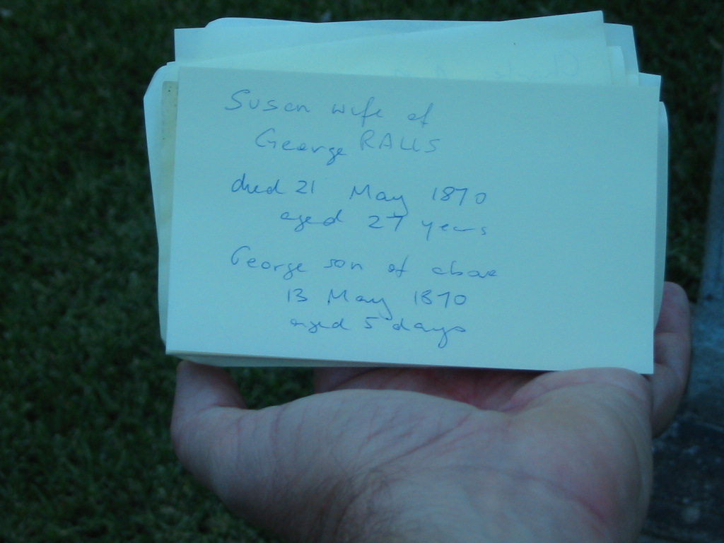 Susan wife of George RALLS died 21 May 1870 aged 27 years,