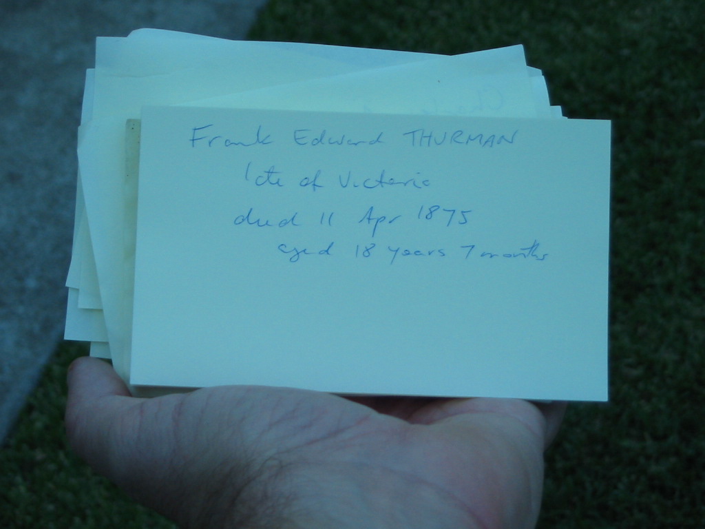 Frank Edward THURMAN late of Victoria died 11 Apr 1875 aged 18 years 7 months,