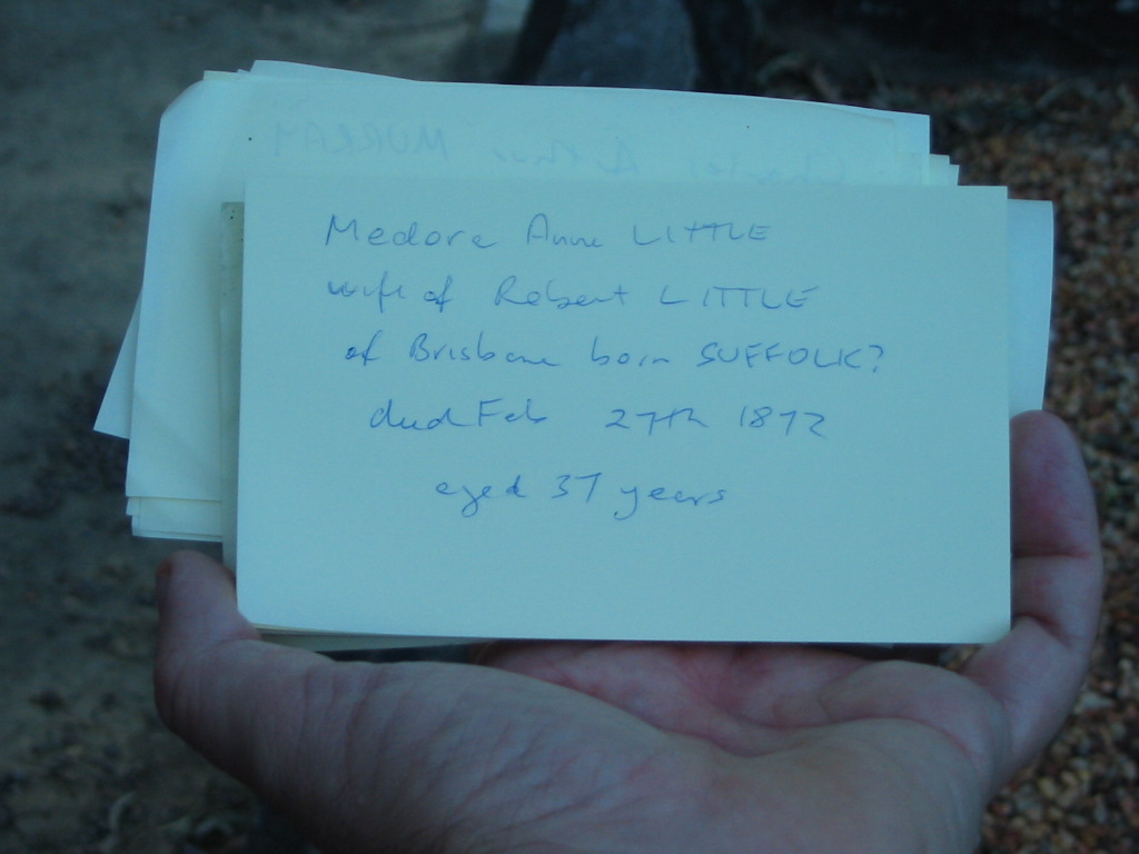 When Paddington Cemetery was closed there were 4000 people interred. Only 120 families took up the offer for re-internment at Toowong. 500 headstones were saved. Of these, by 1932, only 21 remained. 20 of these were re-erected at Christ Church. Some of these are interesting, including Patrick Mayne of recent fame.