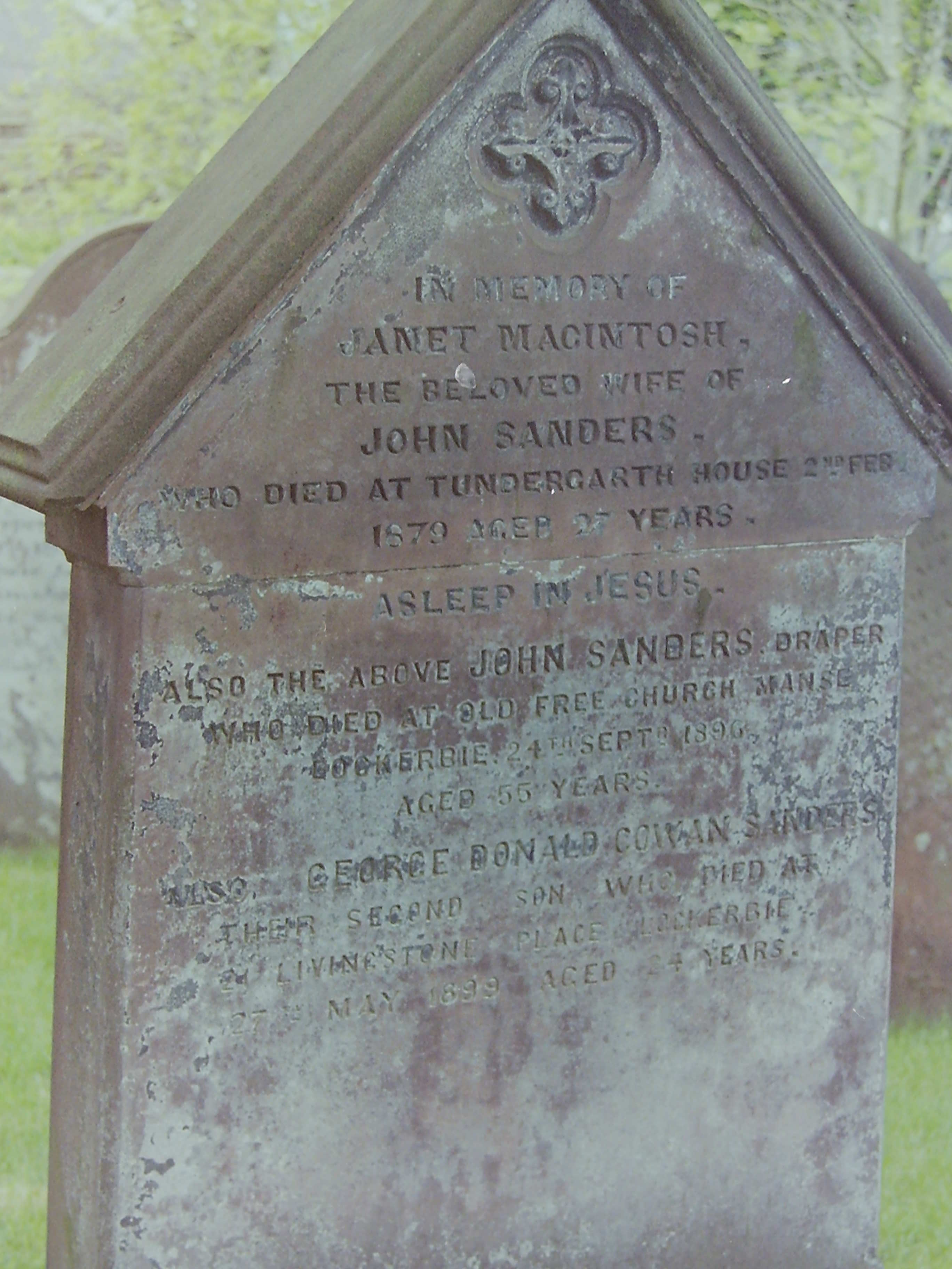 d: 24 Sep 1896 aged 55, at Old Free Church manse, Lockerbie