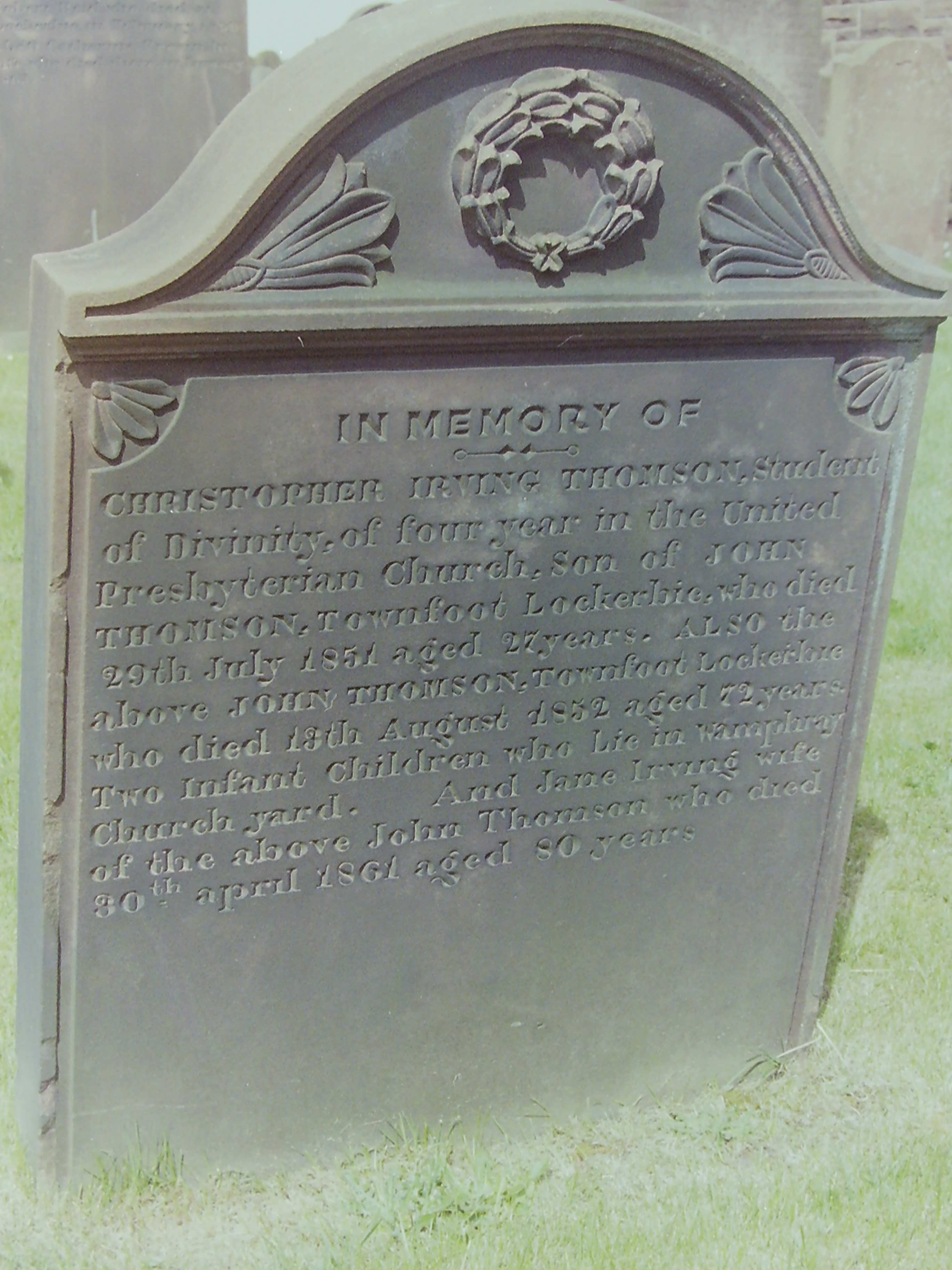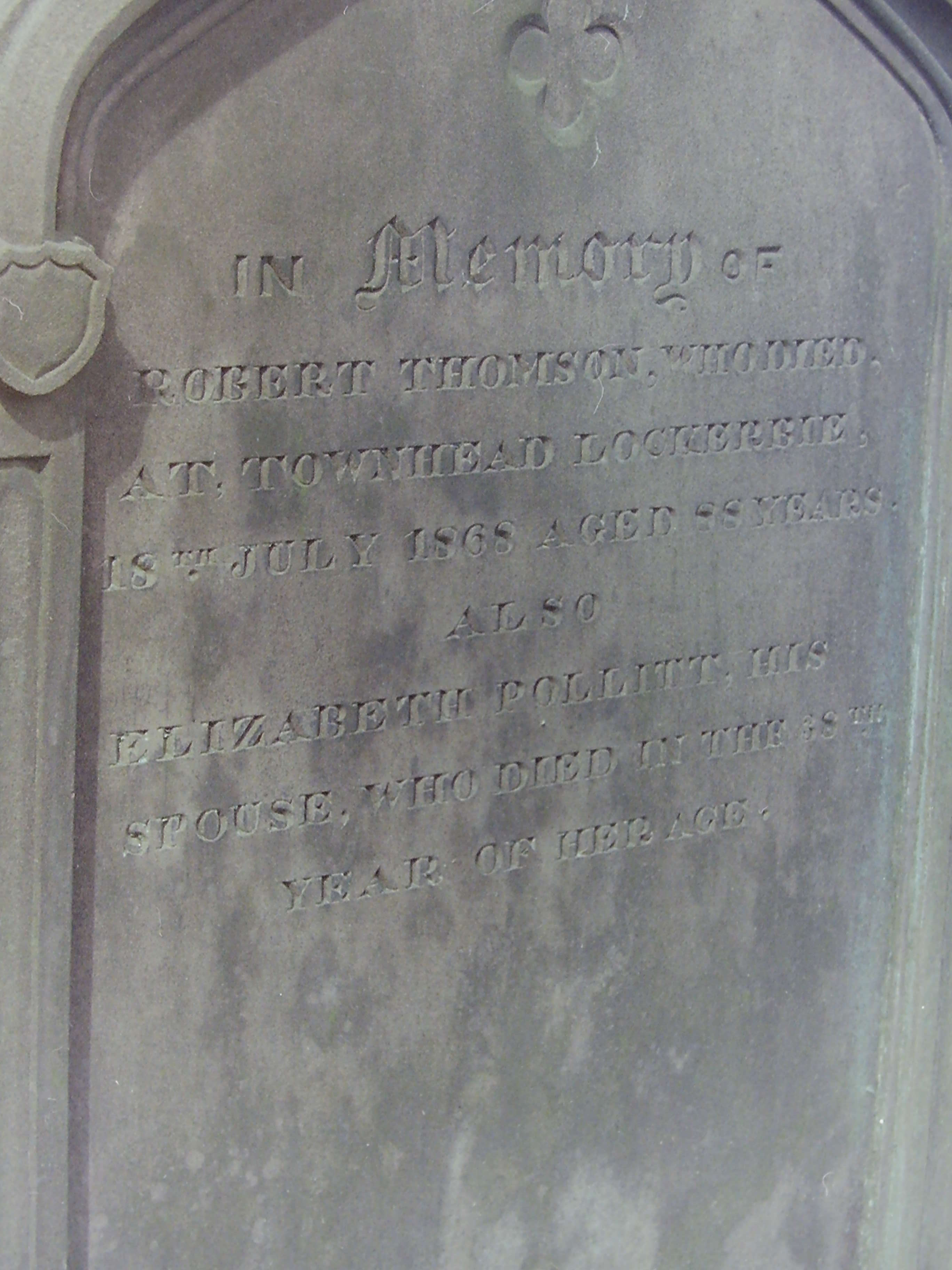 d: 13 Aug 1852 aged 72 Townfoot, Lockerbie