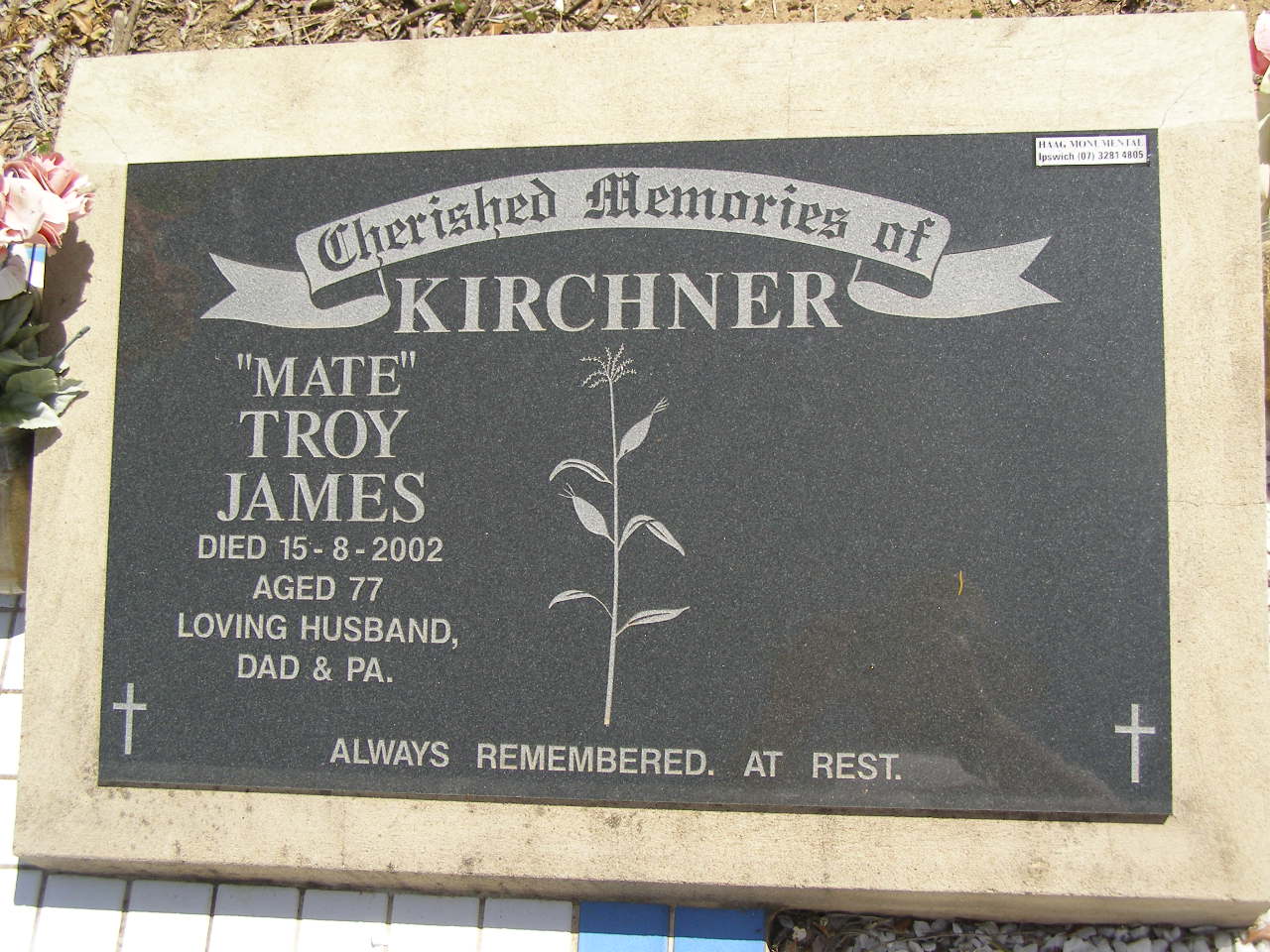 died 15-8-2002 aged 77 years,
