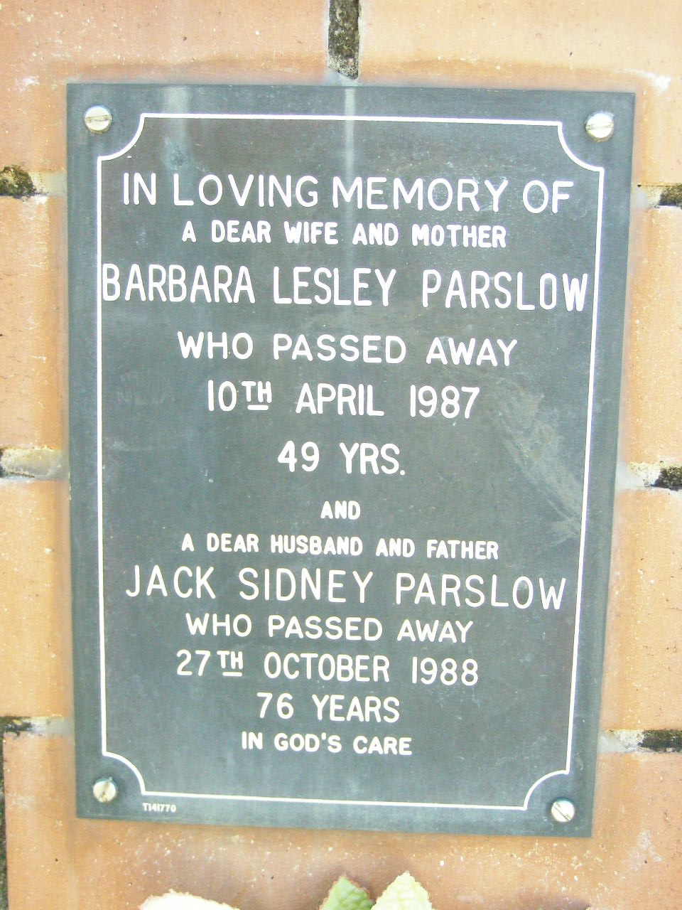 Barbara Lesley PARSLOW, wife mother,
