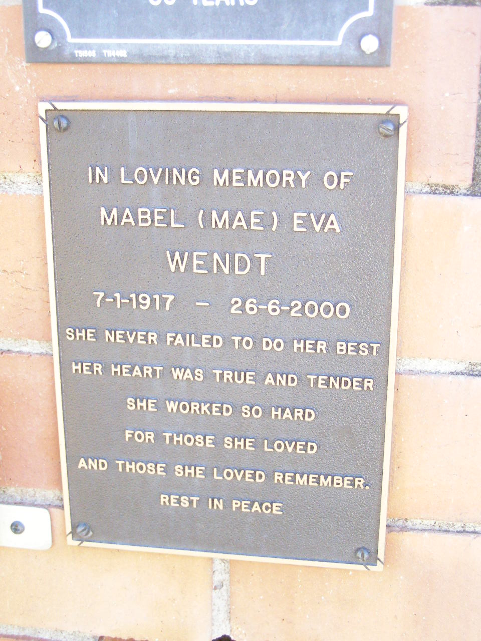 Mabel (Mae) Eva WENDT,