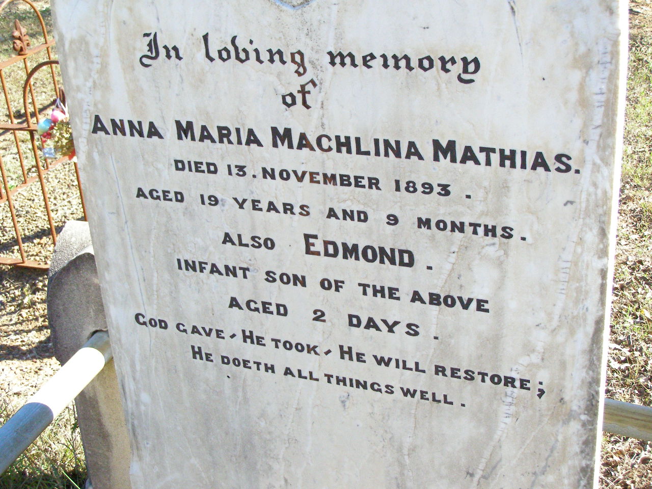 died 13 Nov 1893 aged 19 years 9 months;