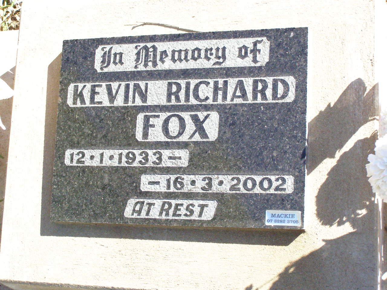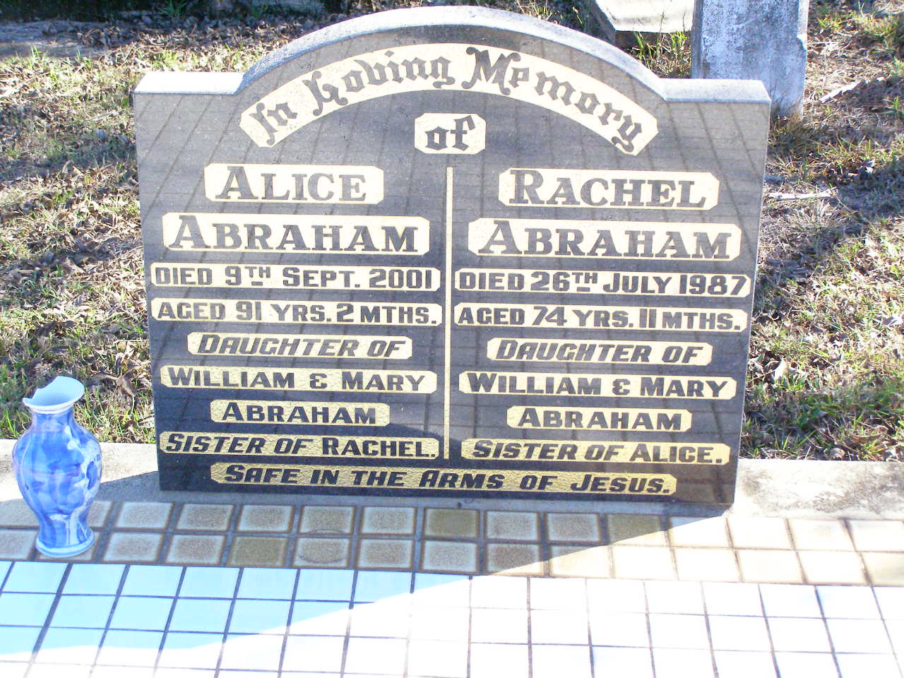 2-12-1916 - 1-4-2003 aged 86 years;