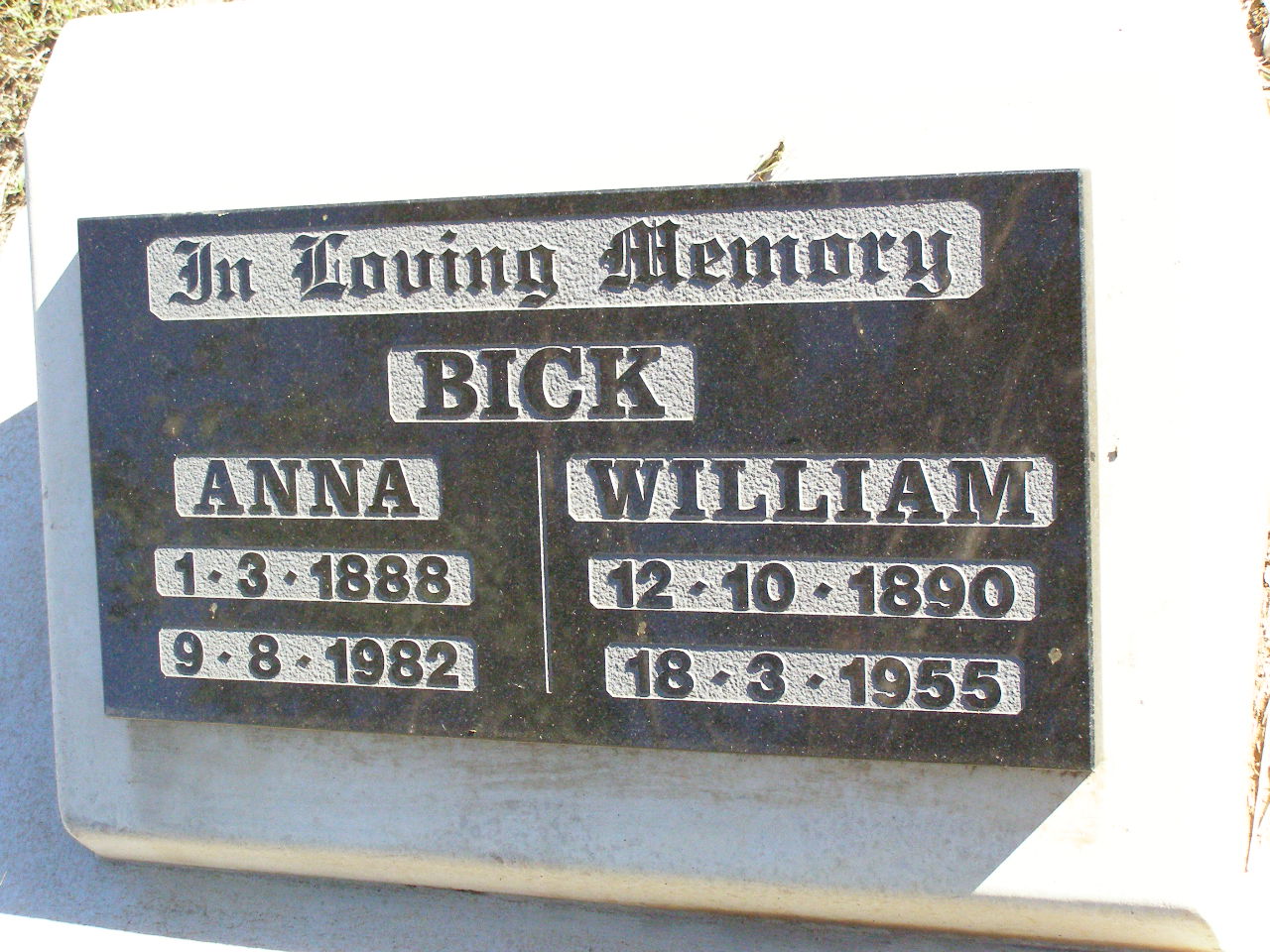 13-12-1903 - 3-2-1993 aged 89 years;