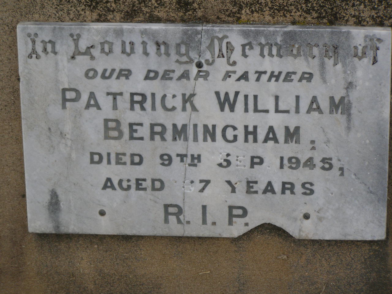 died 9 Sept 1945 aged 67 years;