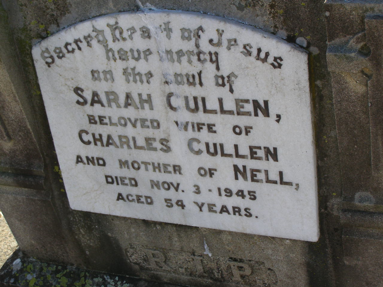 (wife of Charles CULLEN, mother of Nell)