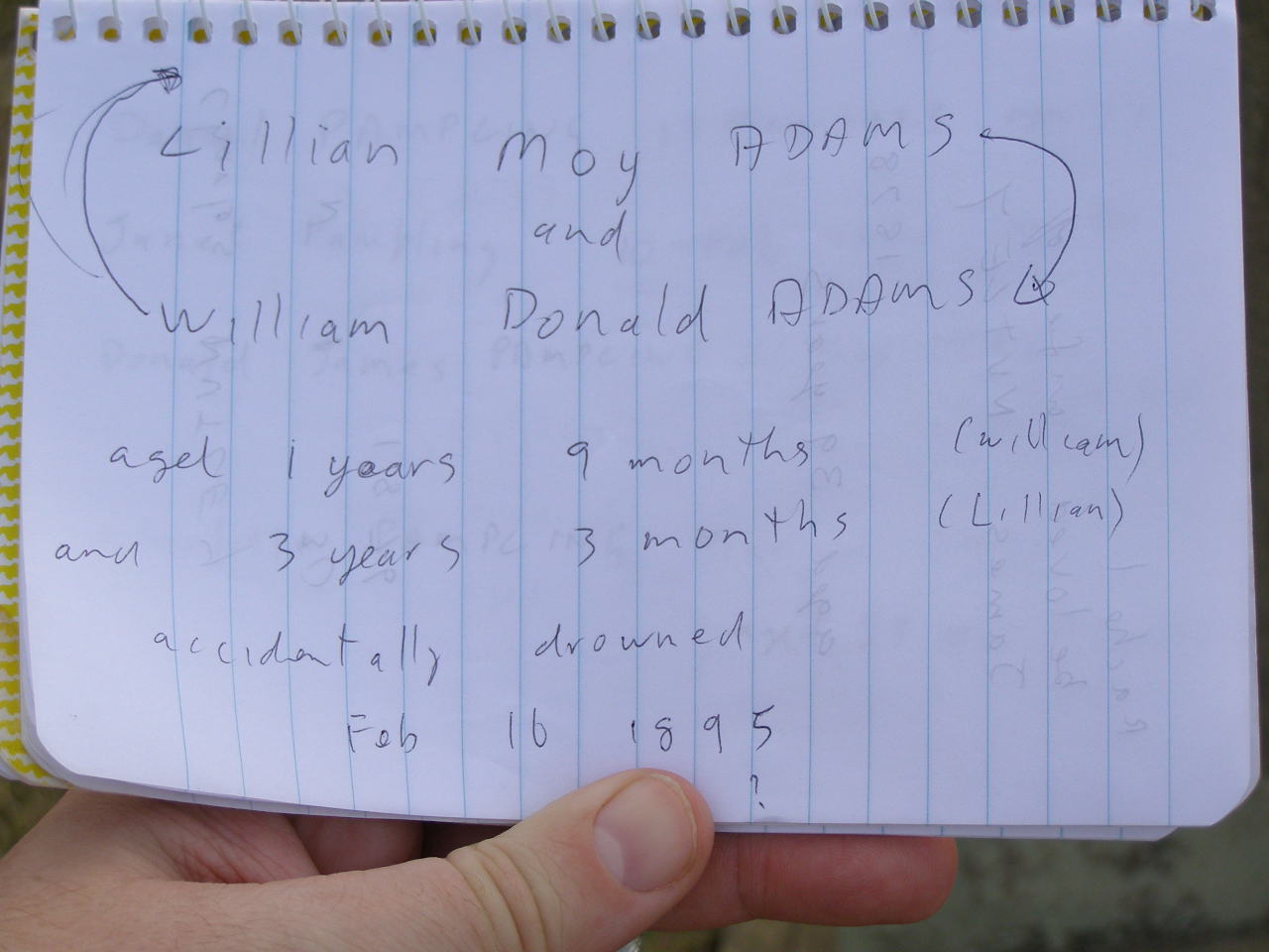 accidently drowned 16 Feb 1895?