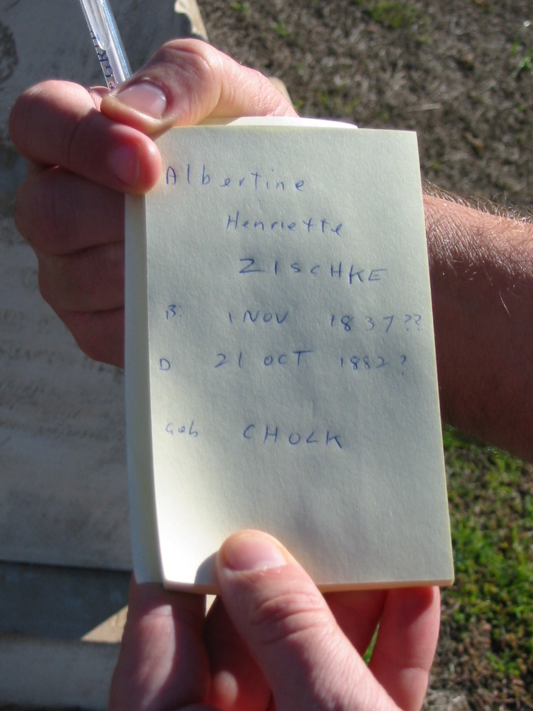Albertine Heinriette ZISCHKE, born Cholk 1 Nov 1837?, died 21 Oct 1882?;