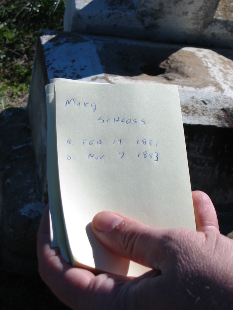 Mary SCHLOSS, born 17 Feb 1881 died 7 Nov 1883;