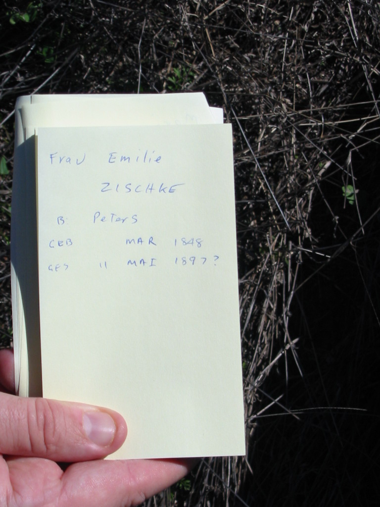 Frau Emilie ZISCHKE, born PETERS, born Mar 1849 died 11 May 1897?;