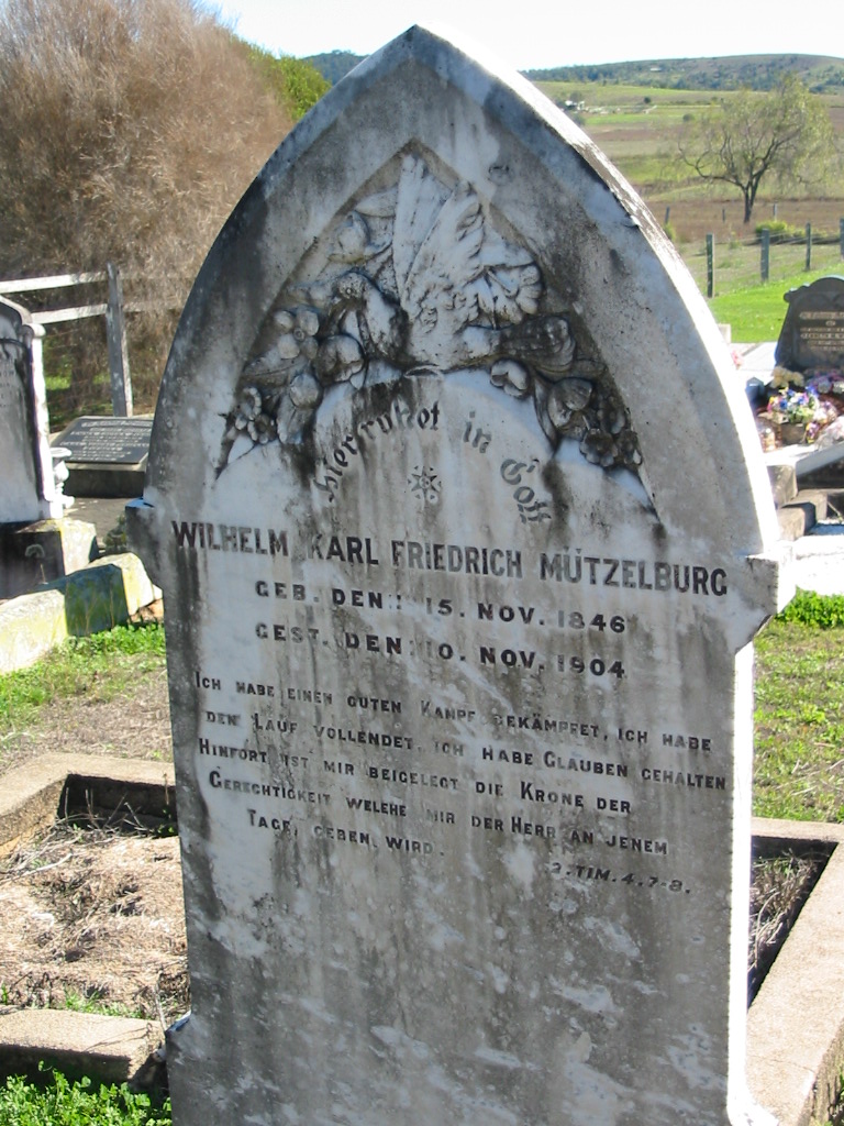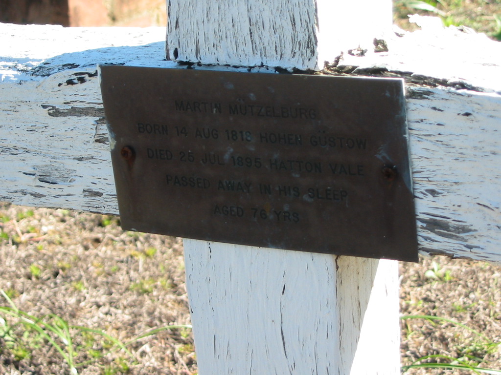 Martin MUTZELBURG, born 14 Aug 1818 Hohen Gustow, died 25 July 1895 Hatton Vale, aged 76 years;