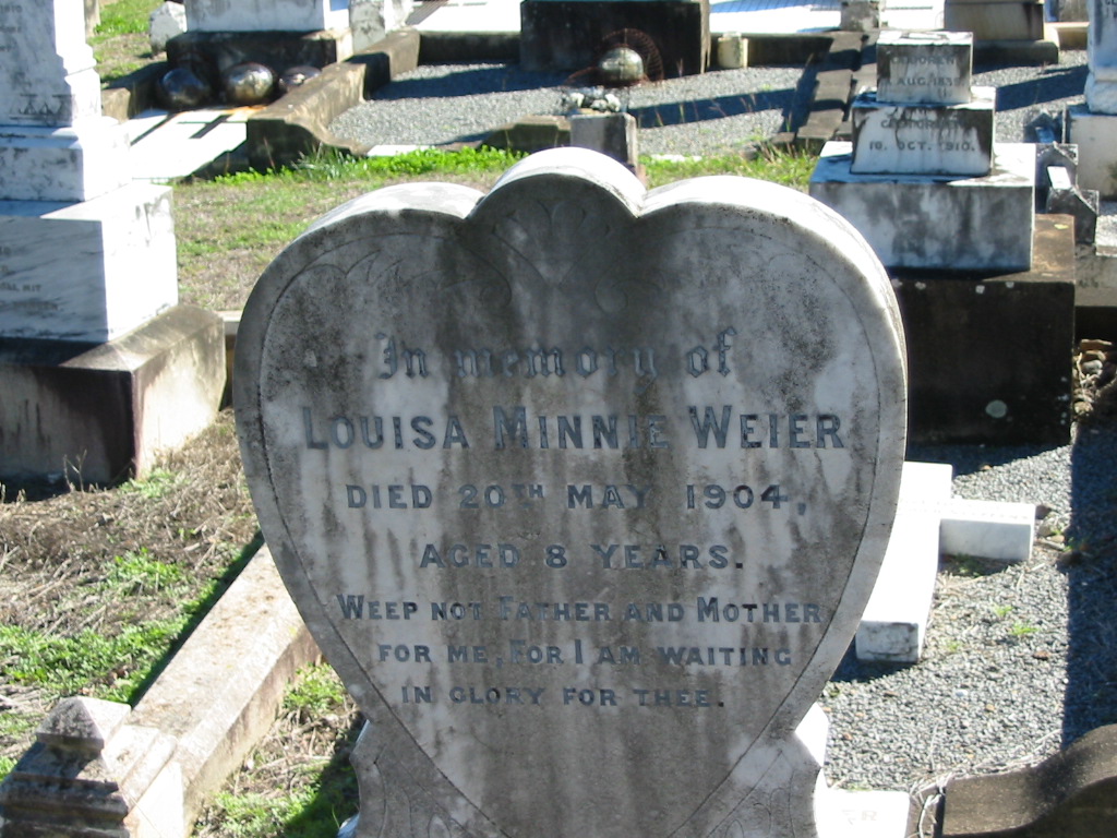 Louisa Minnie WEIER, died 20 May 1904 aged 8 years;
