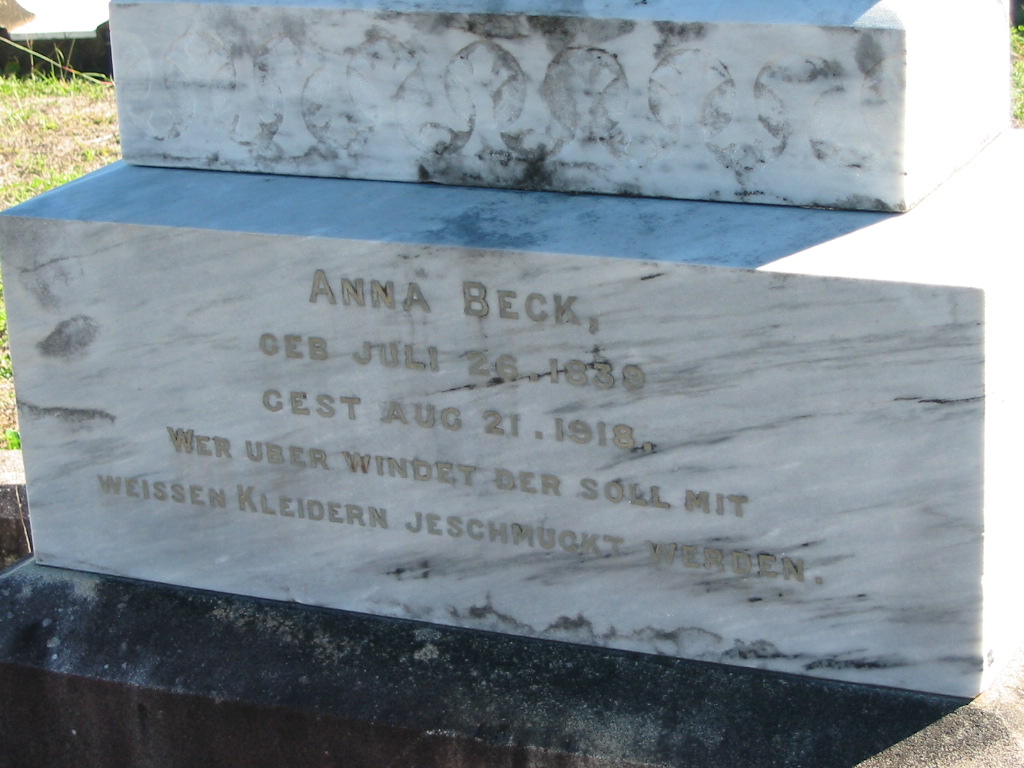 Anna BECK, born 26 July 1839 died 21 Aug 1918;