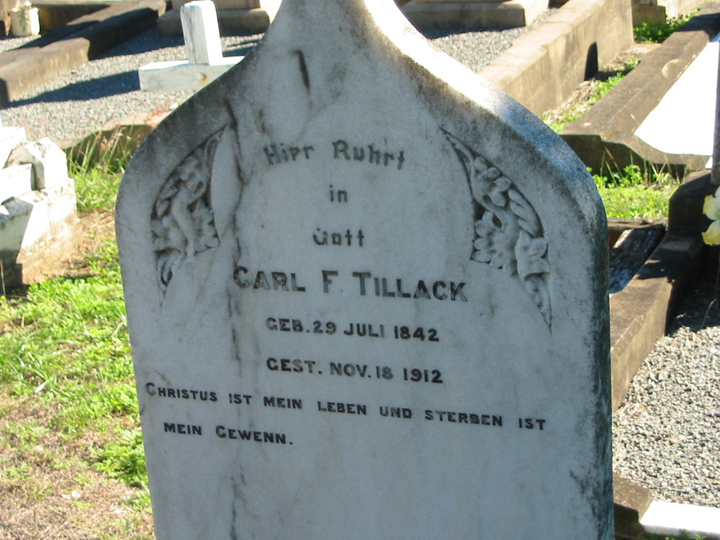 Carl F. TILLACK, born 29 July 1842 died 18 Nov 1912;