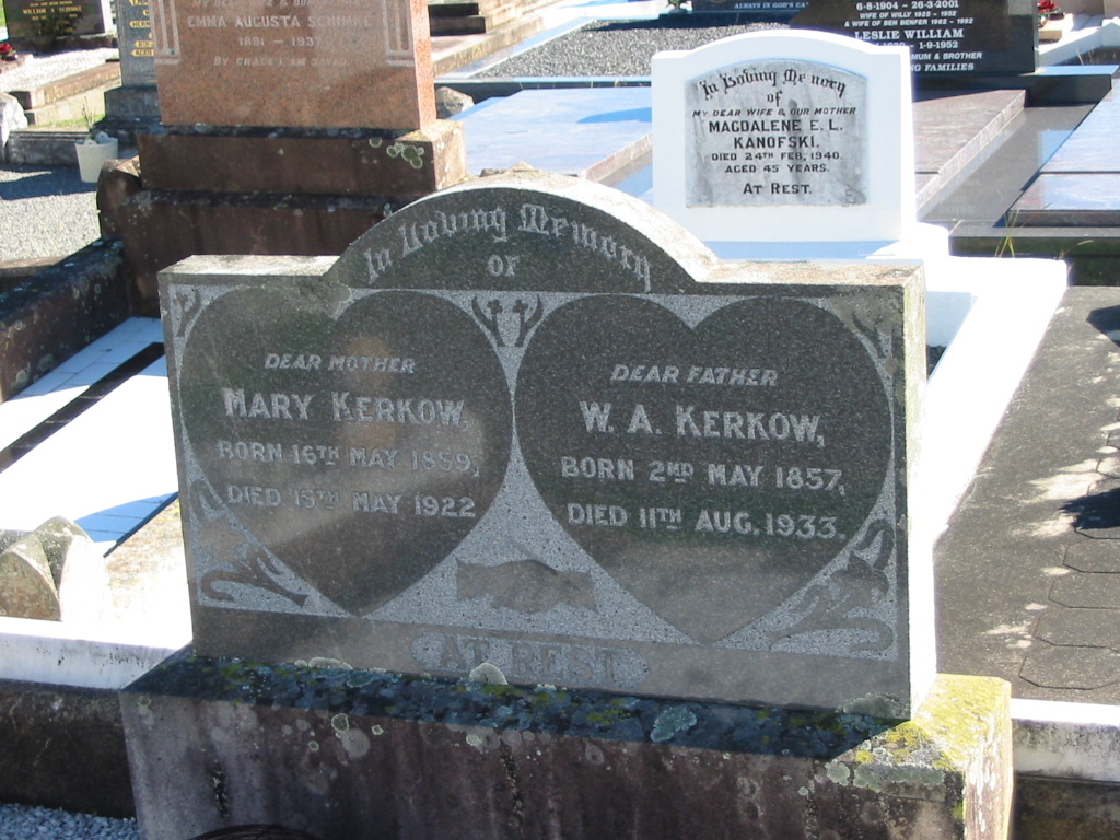 W.A.KERKOW; b: 2 May 1857; d: 11 Aug 1933